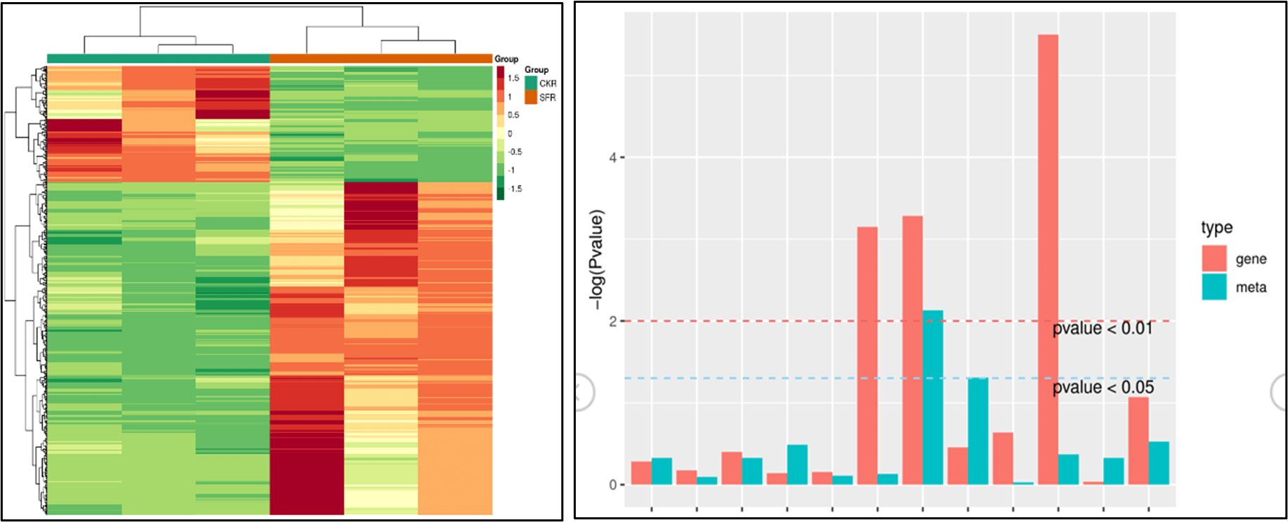 生物刺激素應(yīng)用機理不明確是生物刺激素市場混亂效果參差不齊的主要原因之一。新朝陽以小麥和南瓜為研究對象,通過代謝組轉(zhuǎn)錄組聯(lián)動分析方法,研究花粉多糖調(diào)控的主要代謝通路,指出花粉多糖被植物吸收后通過調(diào)控類黃酮、谷胱甘肽和苯丙烷類物質(zhì)的相關(guān)基因表達,增強谷胱甘肽代謝以及促進類黃酮和苯丙烷生物合成來顯著促進作物根系的生長。此外,花粉多糖還向植物提供豐富的氨基酸、微量元素等多種營養(yǎng)成分,促進葉綠素合成,加強葉片光合作用。