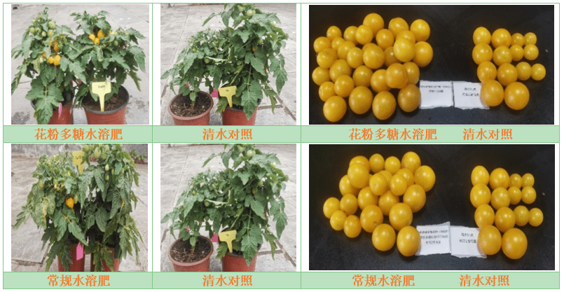 (2)在設(shè)施大棚中,采用花粉多糖制劑產(chǎn)品灌根大棚番茄,7.5kg/公頃可顯著提升番茄風味,提高Vc含量20.3%,增加采摘率4.9%。